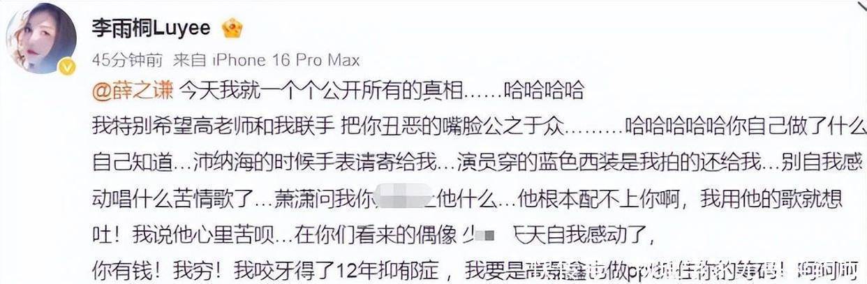 李雨桐指控薛之谦